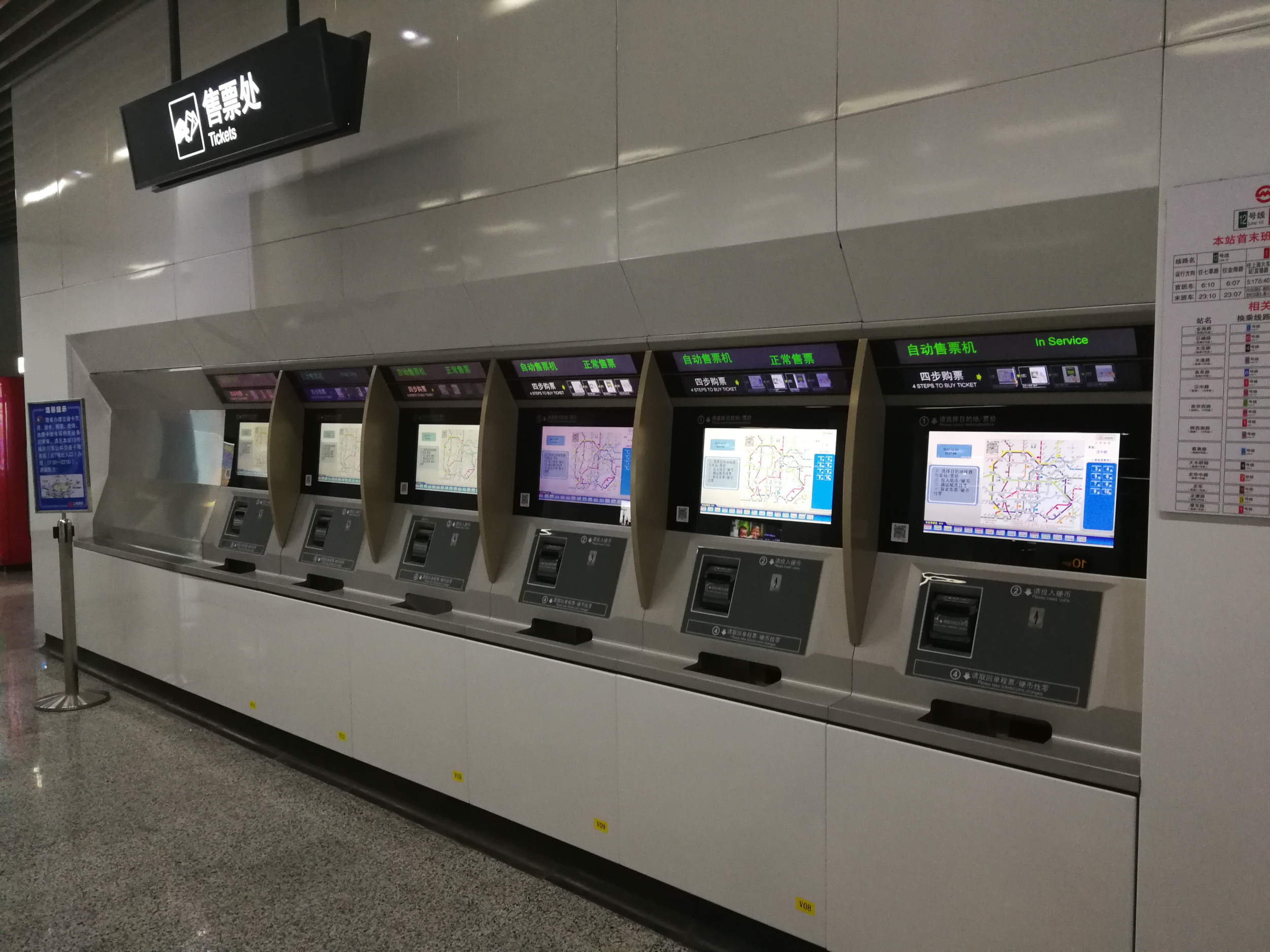 Subway platform ticket vending machine